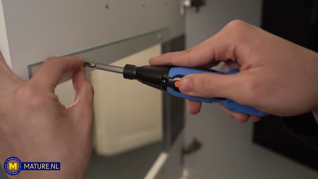 Sarrah Meader, a curvy big tits cougar seducing the handyman toyboy handyman to fuck her hard