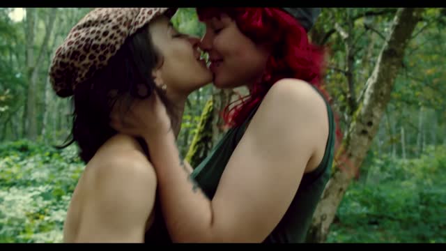 Ginger babe swallows cock in the woods