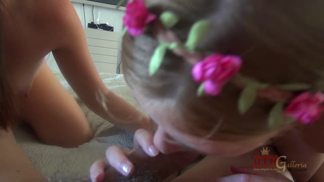 She asks Michael how to use the toys, and he shows her. Pulling out a roll of tape, he puts them tip to tip on the bed frame and anchors them in place. Then he tells Carolina to go to town on the double vibrator as he sits down and watches her work it. Grinding against the buzzing tips, she moans so sweetly. Michael can't stand to watch for long before he joins in, letting Carolina suck his duck as she remains pressed to the toys.